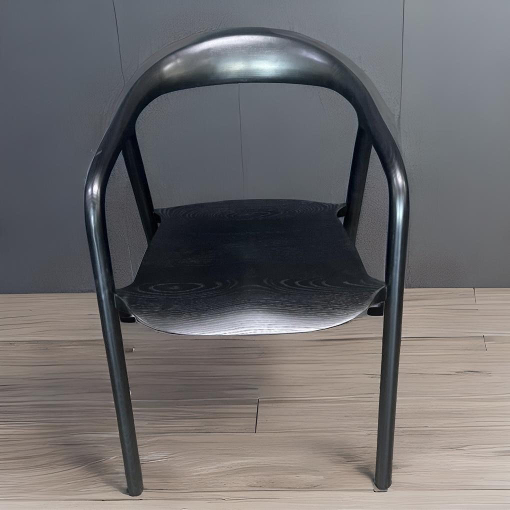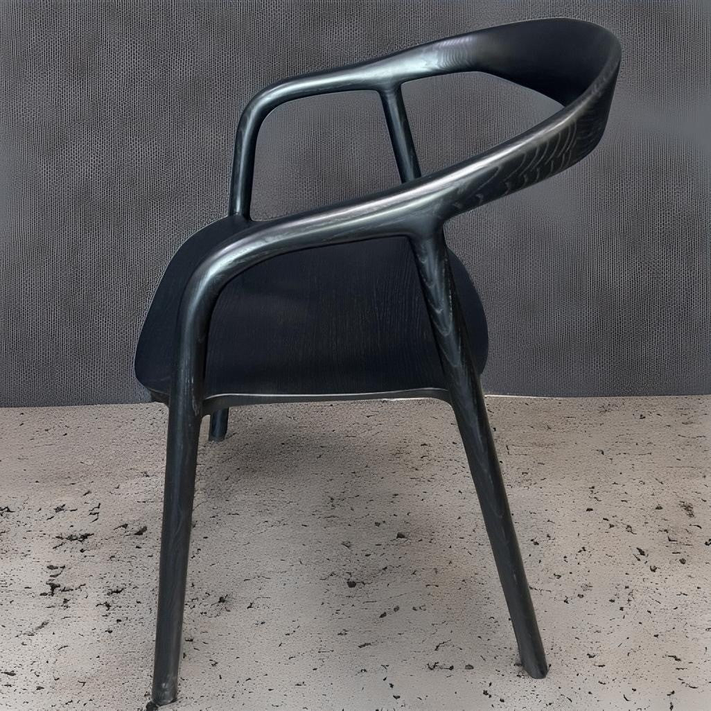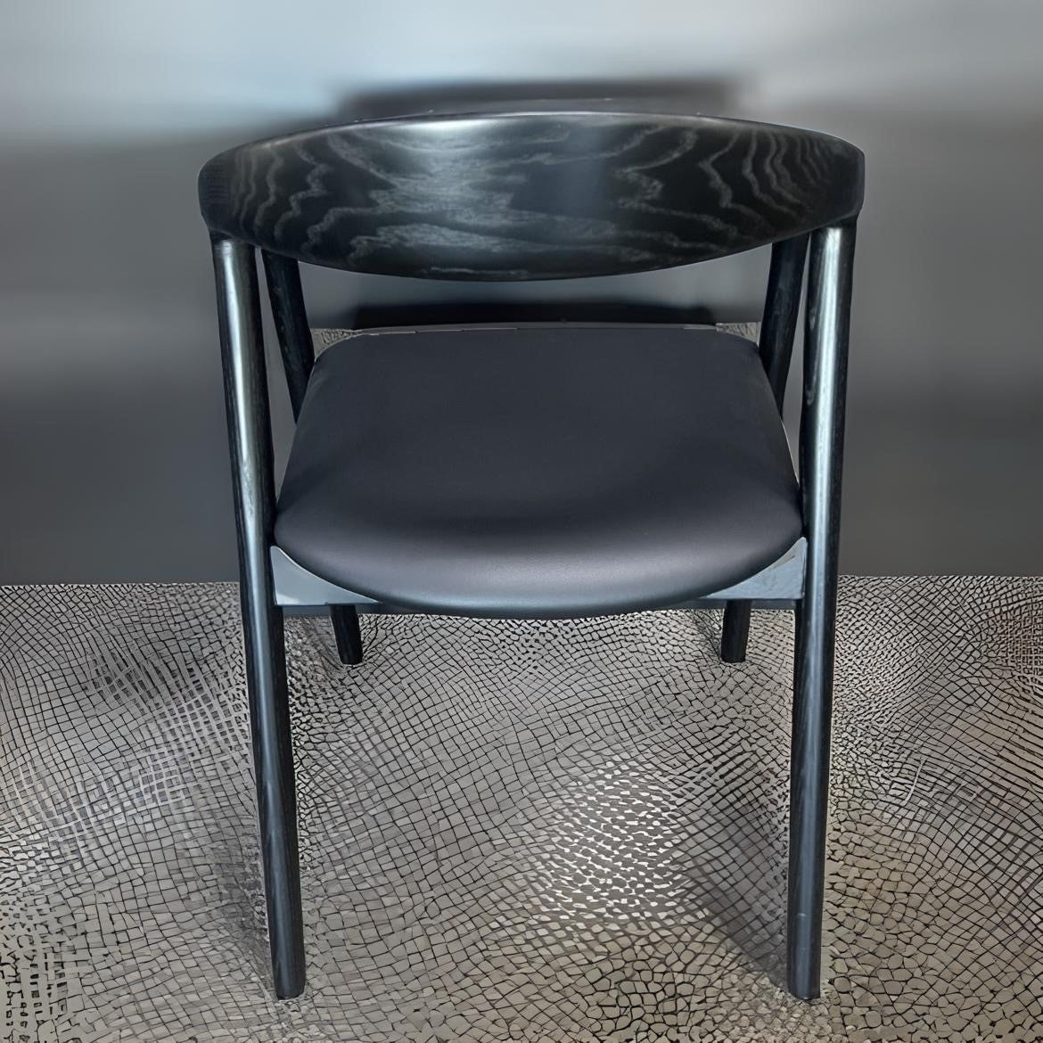 This chair is available in raw/stained, black vinyl, white oil and black.